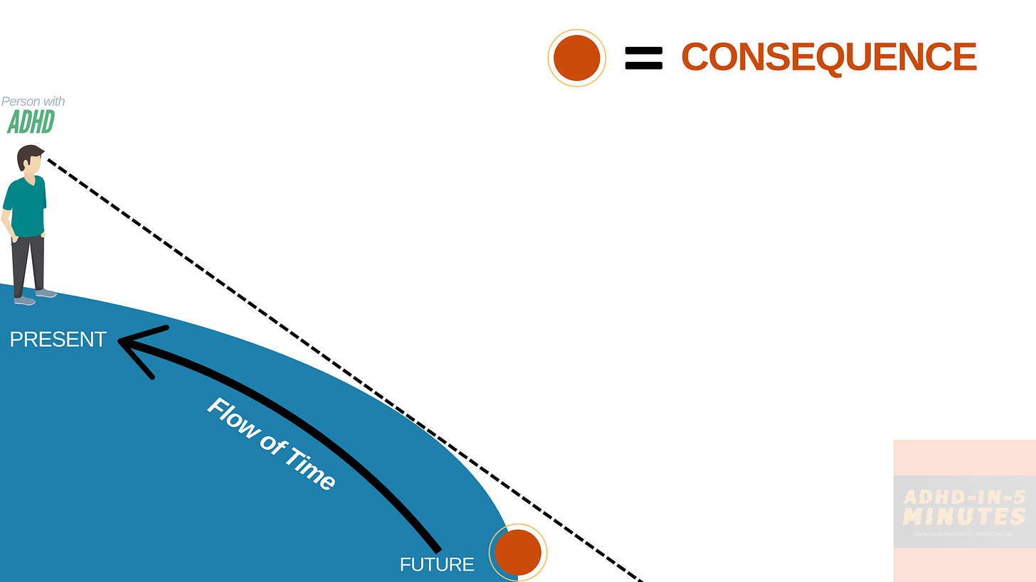 Unfortunately for us ADHDers, it's not as apparent to others that we are living with a kind of nearsightedness. Our difficulties in seeing consequences or events in the future are often misattributed to willful choice, carelessness, or moral failing…